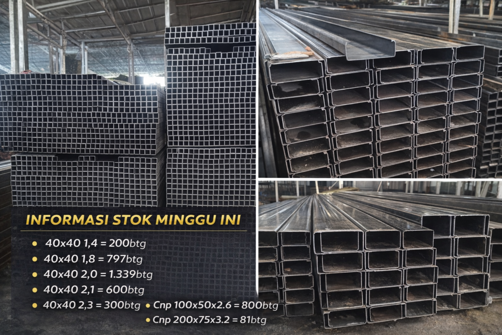 CV Prima Tata Mandiri menyediakan berbagai ukuran besi holo dan CNP dengan stok tersedia dan siap pengiriman langsung dari gudang Surabaya. Produk kami cocok untuk kebutuhan konstruksi, rangka bangunan, kanopi, gudang, hingga proyek industri dengan kualitas terjamin dan harga kompetitif.